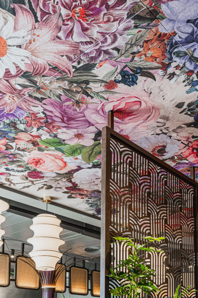 הטכנולוגיה מאפשרת התאמה מלאה של הדימוי לפרויקט, תוך שמירה על ביצועים אקוסטיים גבוהים – ספיגת רעש, הפחתת הדהוד ושיפור בהירות הדיבור גם בשעות עומס. התקרה אינה רק פתרון טכני; היא “שמיים” מעוצבים, שמרחיבים את החלל ומספרים סיפור.