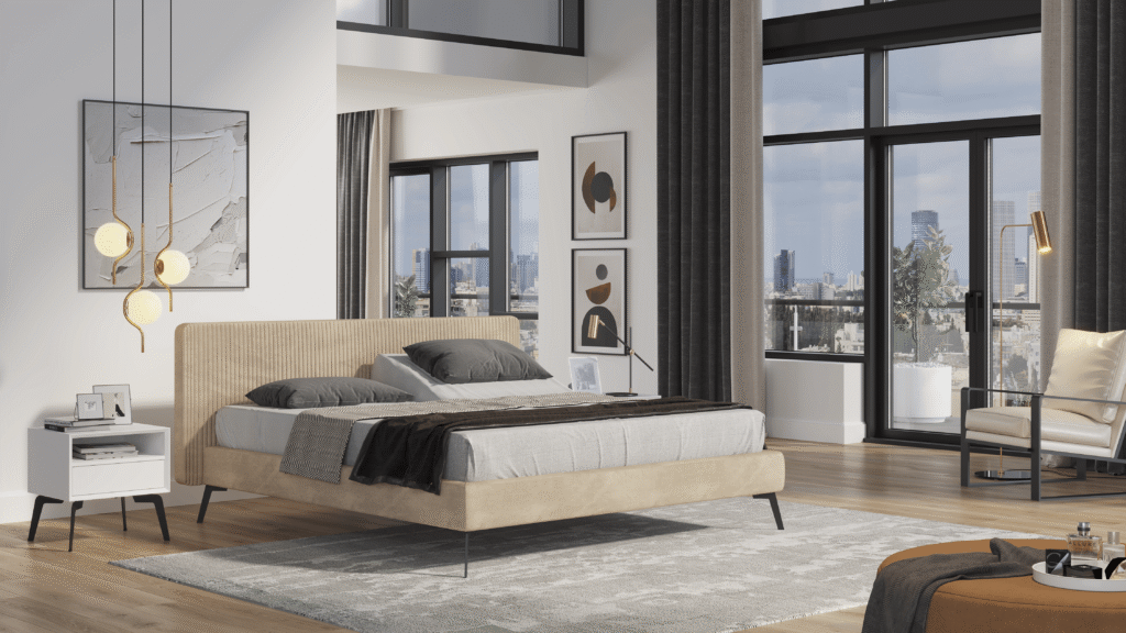 Katz: “Stylistically, the entire world of design has undergone a revolution in recent years. In the past, two styles stood out, modern and rustic. Today, there are combinations of styles, and we have diverse solutions for bed frames that we import from the Netherlands and Italy, among others. These are frames that bring a special design language, allow for a headboard with presence, while at the same time maintaining a minimalist frame that takes up less space, so that the sleeping surface remains as wide as possible. Our design is timeless, and the frame remains as stable and new as on the day of purchase, thanks to the quality materials we import, such as birch wood and aluminum. People invest a lot in renovations, and it is important for them to know that the bed will continue to be relevant even when moving or in future changes to the home.”