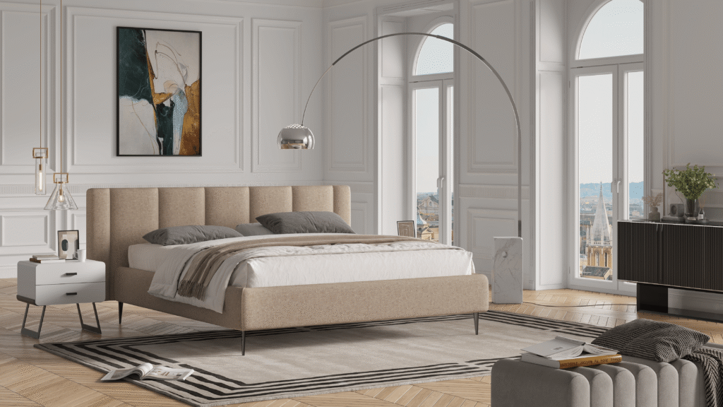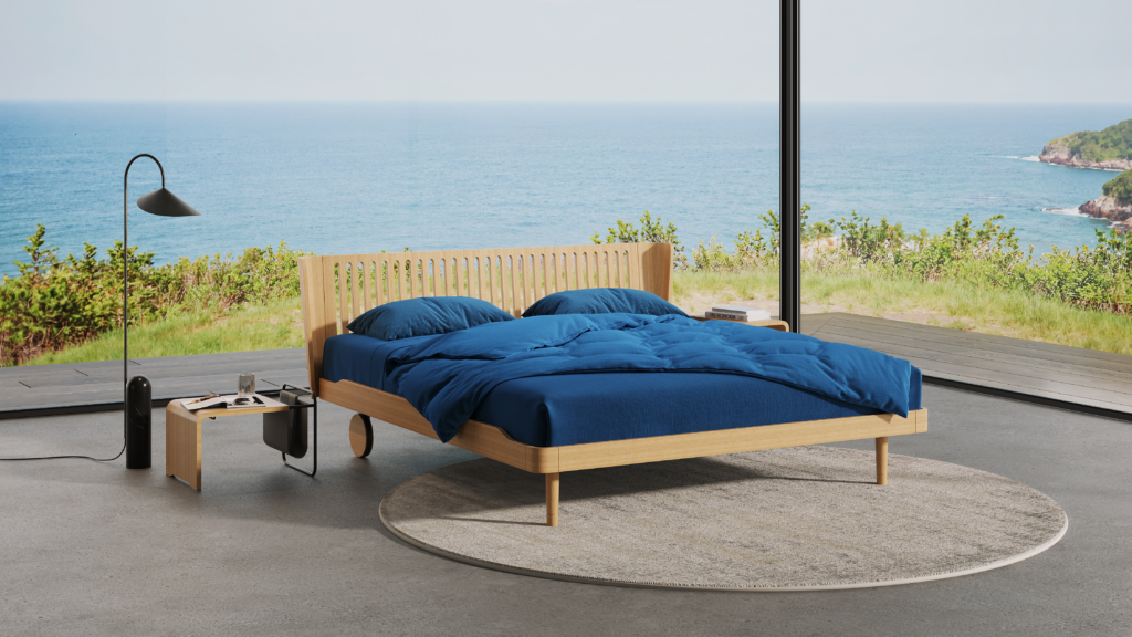 BAGIRA model bedHow do you create a bedroom today that is both beautiful, calm, and functional?